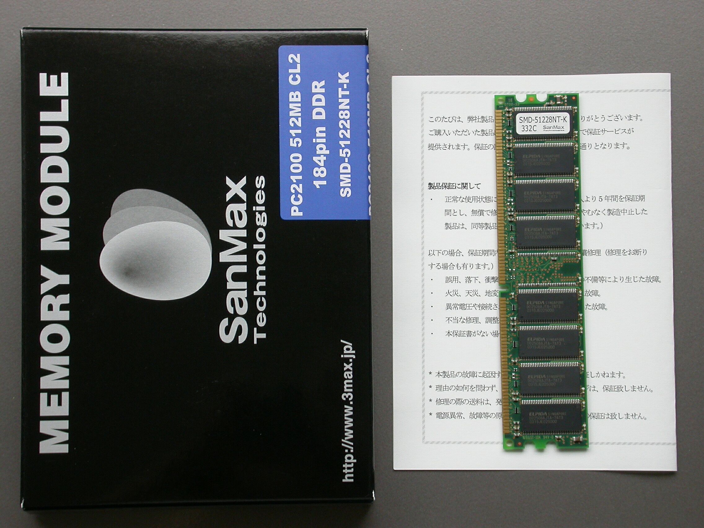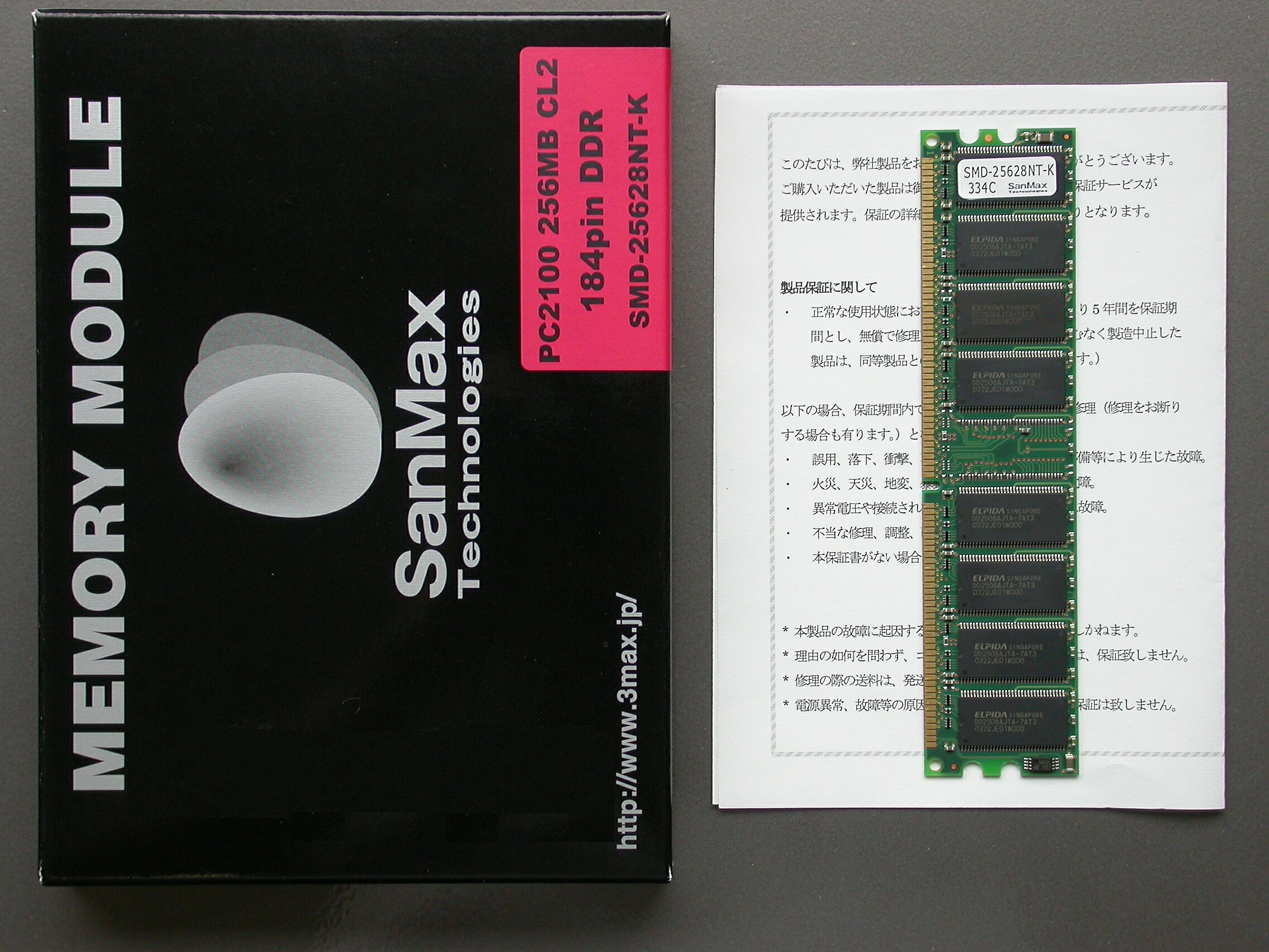 SanMax PC2100 256(SMD-25628NT-K)/512(SMD-51228NT-K) CL2 2003/08/18 |
